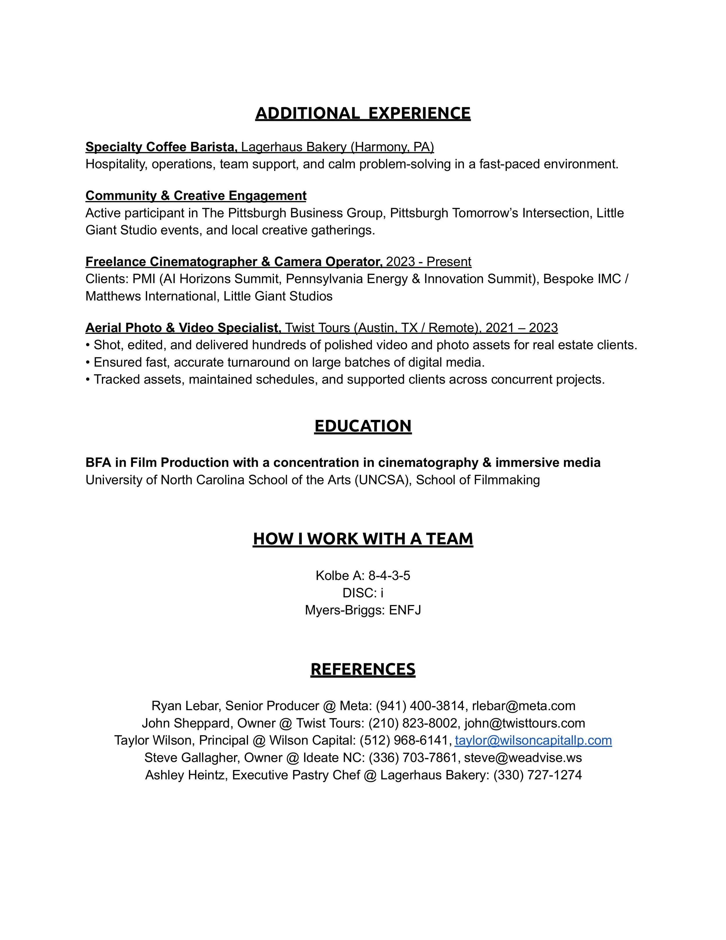 Below, you will find my creative project manager resume along with work samples from work as a video producer/editor.